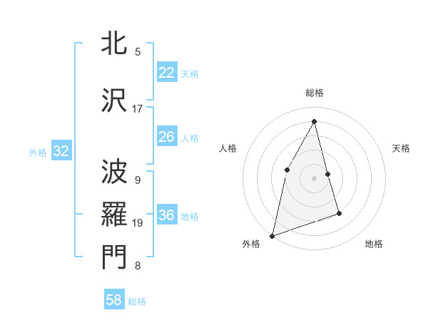 北沢 波羅門さんを姓名の画数から五運を鑑定