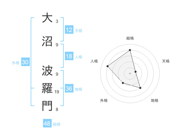 大沼 波羅門さんの総格は48画の4点!