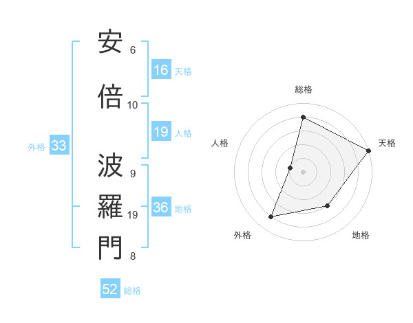 安倍 波羅門さんを姓名の画数から五運を鑑定