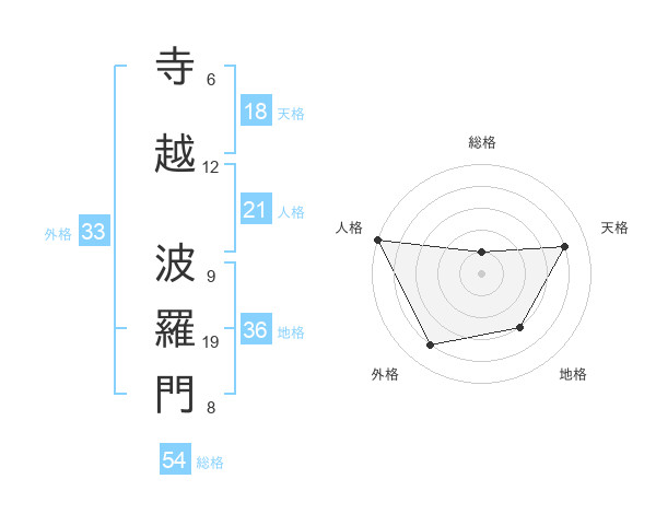 寺越 波羅門さんを姓名の画数から五運を鑑定