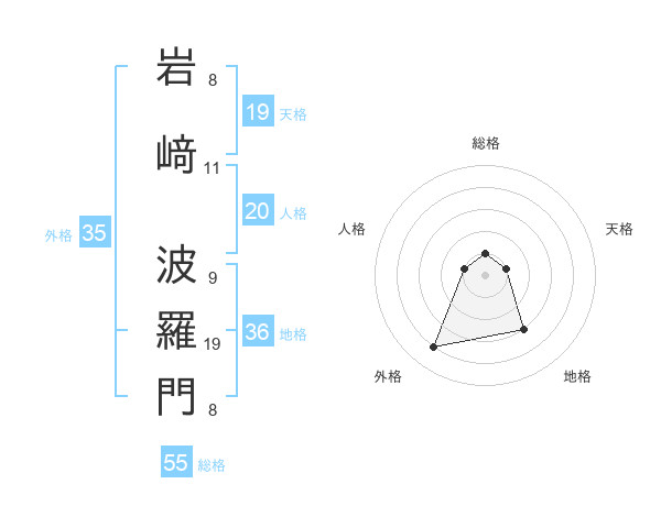 岩﨑 波羅門さんを姓名の画数から五運を鑑定
