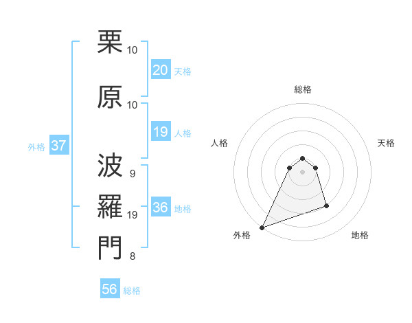 栗原 波羅門さんの外格は37画の5点!