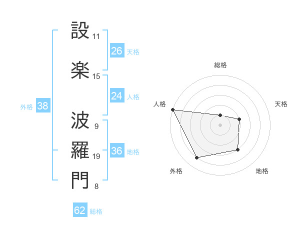 設楽 波羅門さんの外格は38画の4点