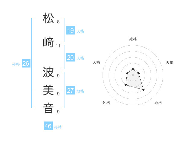 松﨑 波美音さんの総格は46画の1点!