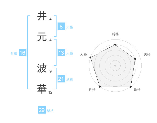 井元 波華さんの総格は29画の4点!