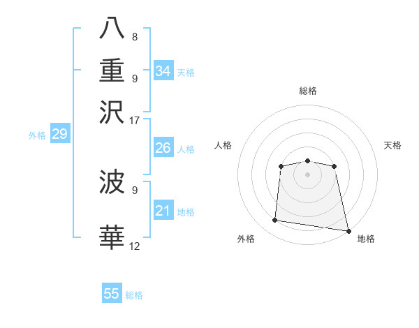八重沢 波華さんの総格は55画の1点!