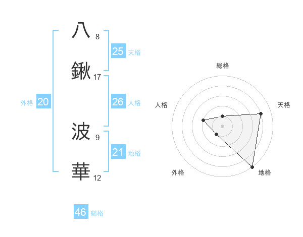 八鍬 波華さんを姓名の画数から五運を鑑定