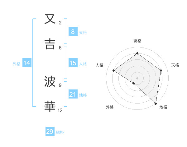 家系が持つ宿命的な運勢を表します。祖先から受け継いだ苗字ですので自分の力が及びません。家柄を象徴します。