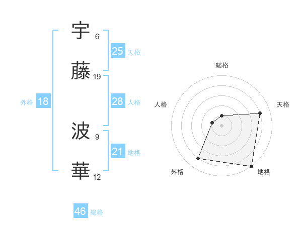宇藤 波華さんを姓名の画数から五運を鑑定