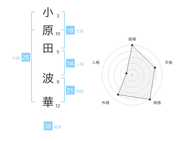 小原田 波華さんの総格は39画の5点!
