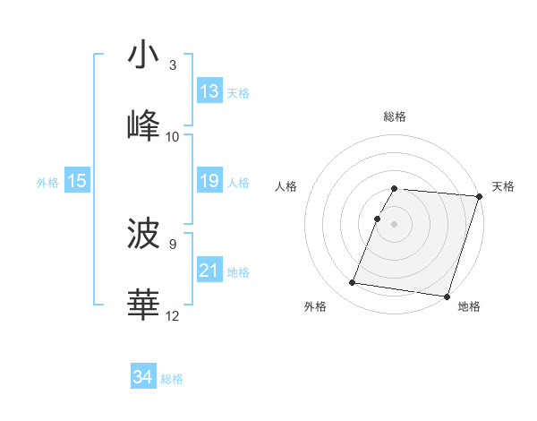 小峰 波華さんの天格は13画の5点!