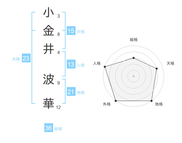 小金井 波華さんの天格は15画の4点!