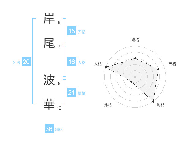 岸尾 波華さんを姓名の画数から五運を鑑定