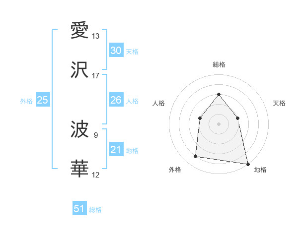 愛沢 波華さんの総格は51画の3点!
