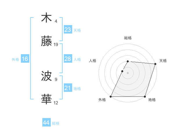 木藤 波華さんの天格は23画の5点!