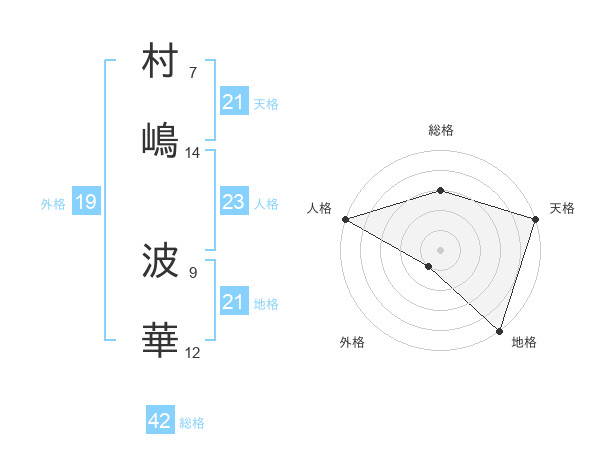 村嶋 波華さんの天格は21画の5点!