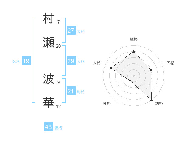 村瀬 波華さんの人格は29画の4点!