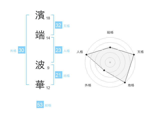 濱端 波華さんの天格は32画の5点!