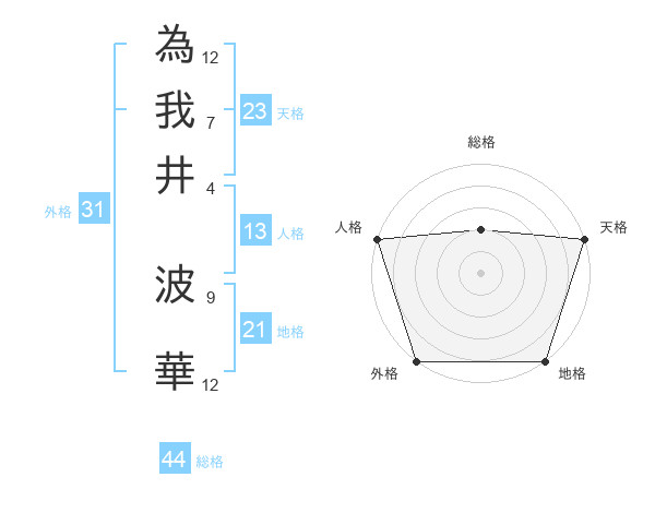 為我井 波華さんの外格は31画の5点!