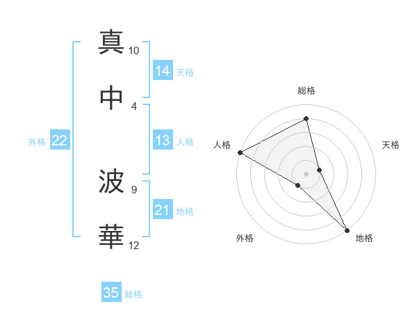 真中 波華さんの外格は22画の1点!