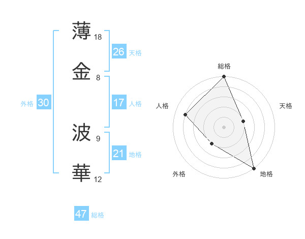薄金 波華さんの総格は47画の5点!