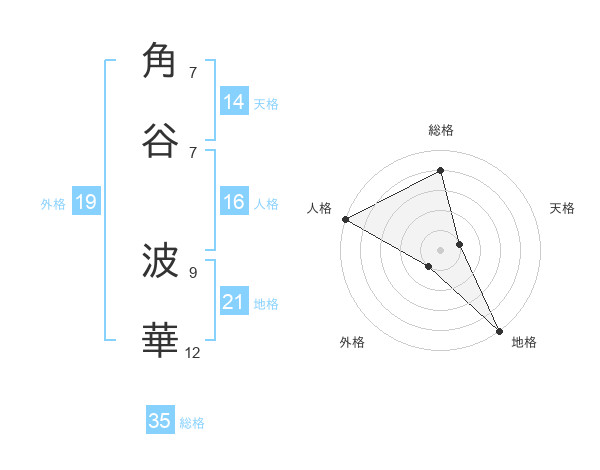 角谷 波華さんの総格は35画の4点!
