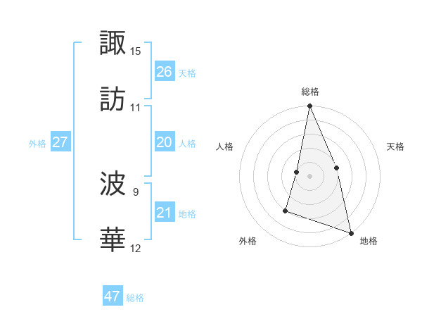 諏訪 波華さんの総格は47画の5点!