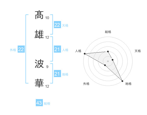 髙雄 波華さんの外格は22画の1点!
