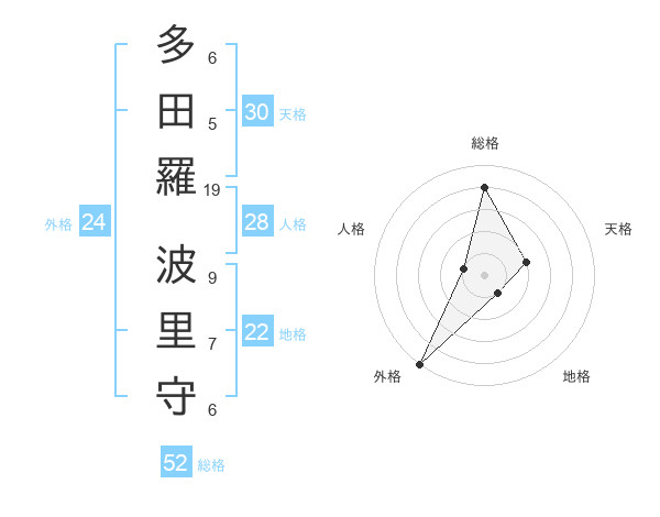 多田羅 波里守さんを姓名の画数から五運を鑑定