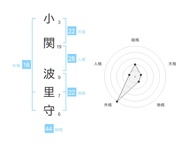 小関 波里守さんの外格は16画の5点!