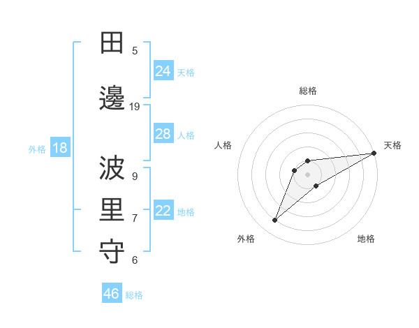 田邊 波里守さんを姓名の画数から五運を鑑定