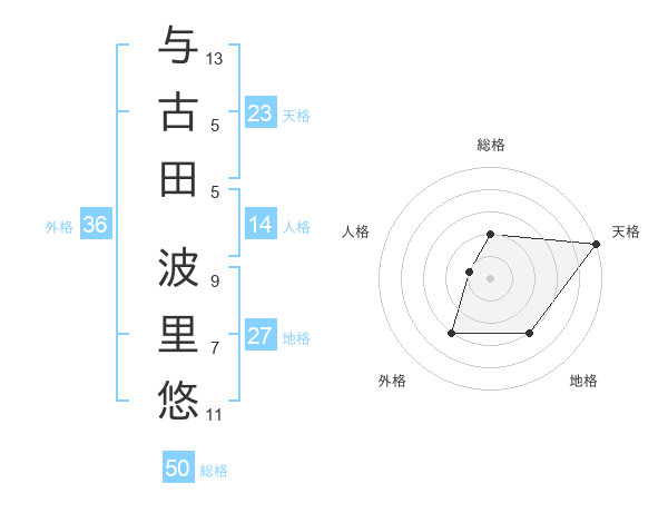 与古田 波里悠さんを姓名の画数から五運を鑑定