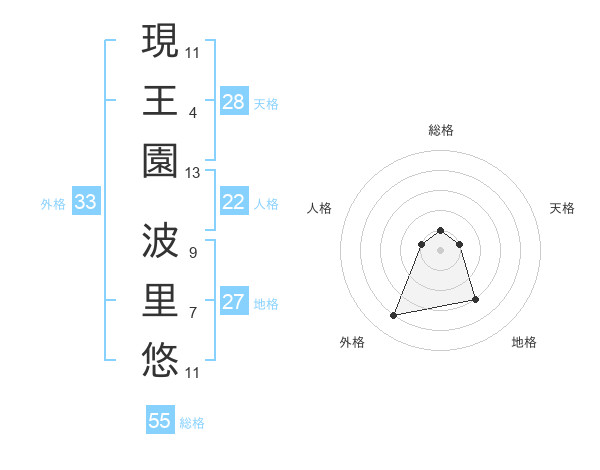 現王園 波里悠さんを姓名の画数から五運を鑑定