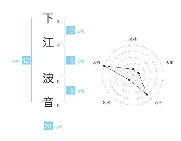 下江 波音さんの総格は28画の1点!
