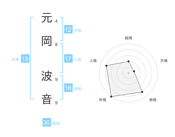 元岡 波音さんの外格は13画の5点!