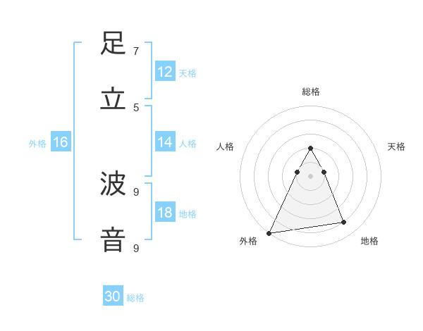 足立 波音さんの外格は16画の5点!