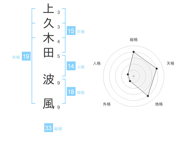上久木田 波風さんを姓名の画数から五運を鑑定