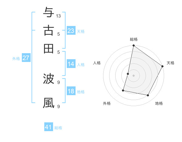 本サイトの鑑定結果の正当性は保証しません。鑑定結果は参考程度にお読みください。実際の名づけにご利用される場合は、姓名判断についてご自身でよくお調べください。