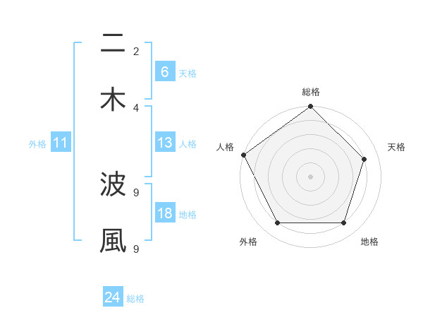 二木 波風さんの天格は6画の4点!