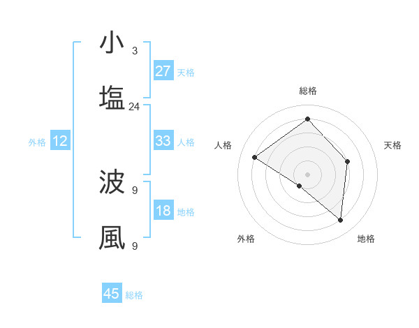小塩 波風さんの総格は45画の4点!