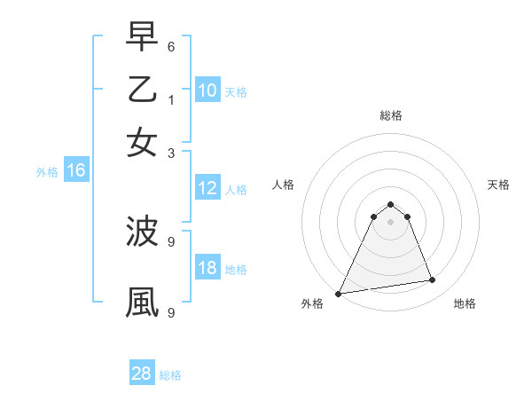 早乙女 波風さんを姓名の画数から五運を鑑定
