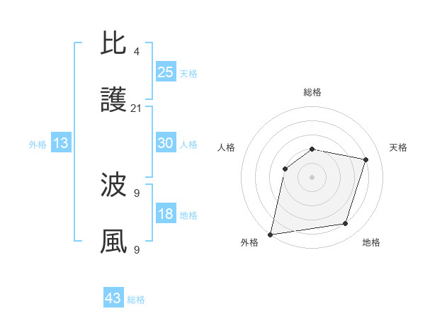 比護 波風さんの総格は43画の2点!