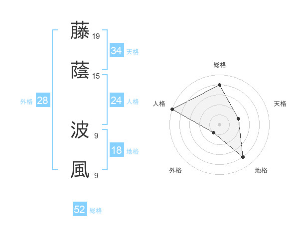 藤蔭 波風さんの総格は52画の4点!