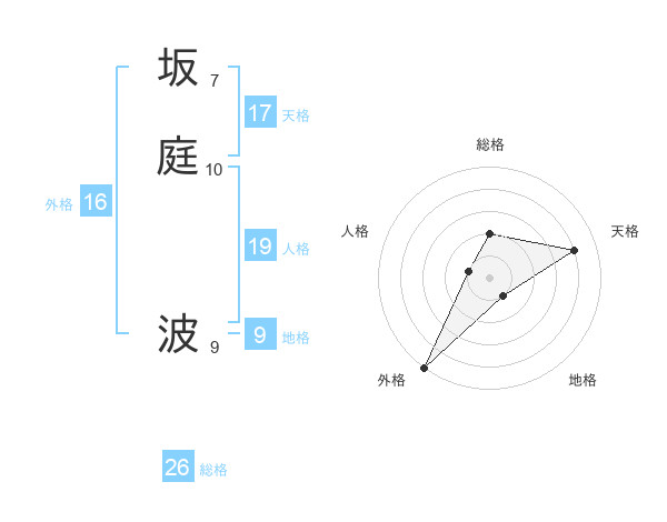 坂庭 波さんの総格は26画の2点!