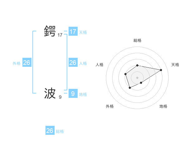 鍔 波さんの総格は26画の2点!
