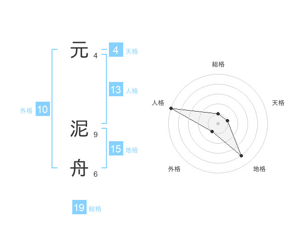 元 泥舟さんの総格は19画の1点!
