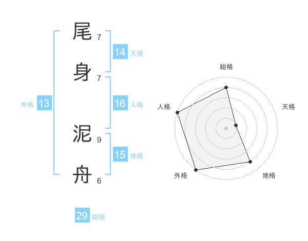 尾身 泥舟さんを姓名の画数から五運を鑑定