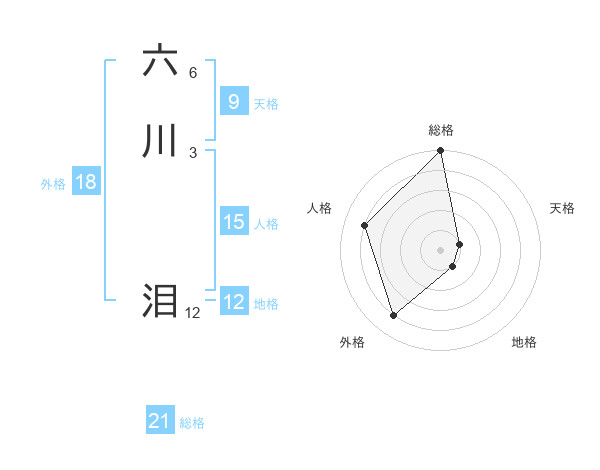 六川 泪さんの総格は21画の5点!