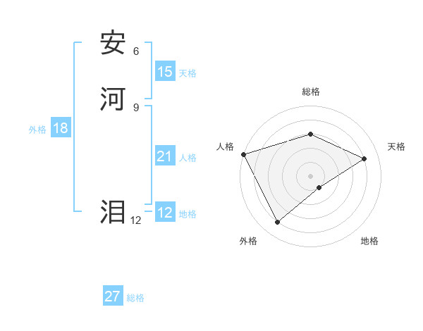 安河 泪さんを姓名の画数から五運を鑑定