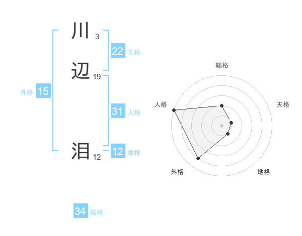 川辺 泪さんの総格は34画の2点!